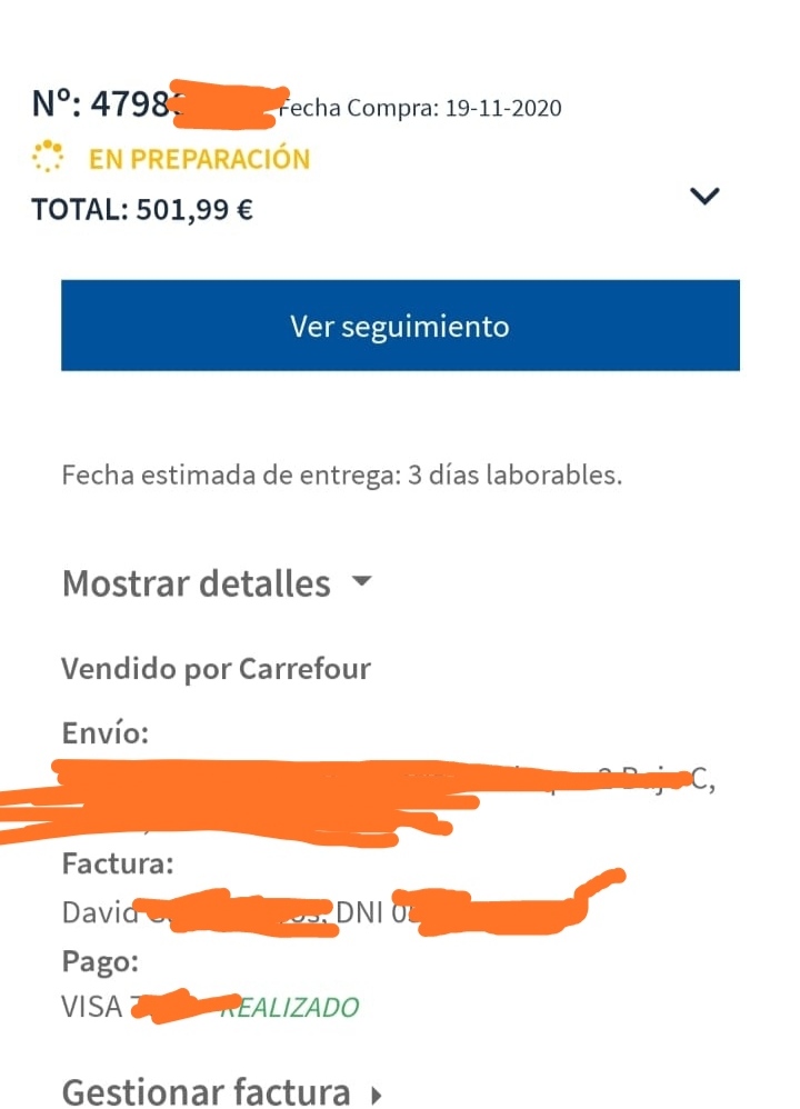Señores, ya le tengo en casa. Como os dije, he tenido que ir a por ella porque por algún tipo de incidencia (dirección errónea supongo) no la ponían en reparto a pesar de tenerla allí desde esta mañana. La primera imagen al llegar al centro es mala: una nave gigantesca bastante vacía y paquetes por ahí sueltos. Pero luego el trato ha sido perfecto. Le di mis datos al chaval y tardó poco en encontrarla. Eso si, vaya tela con Carrefour y su “protección”. Yo había pedido dos consolas, y me he encontrado que venían en una caja exageradamente grande para lo que incluía en su interior, por lo que como os imagináis las dos consolas iban dentro sueltas con mucho espacio libre. Aún así las cajas estaban sin marcas y perfectamente cerradas. Así que nada señores, otro ya con su consola que fue pedida aquel día 19 por la mañana que ninguno olvidaremos jajaja.