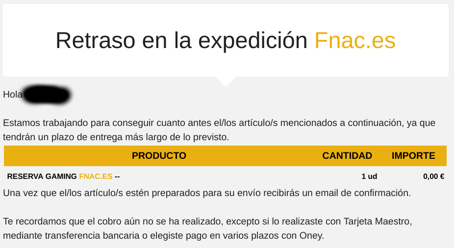 A mi esto, de que los estados del pedido no cambien, lo del eternamente en proceso de validación y algunas cosas que se van leyendo no me huele bien, siendo honestos, me da igual recibirla el 19 que el 20, pero si se fuese ya para el 23 o 24 ya me joderia mas por perder el finde para viciar.