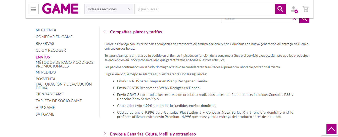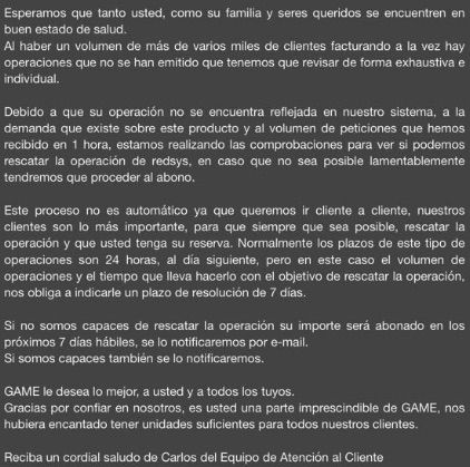 El mail lo he enviado a atencionalcliente@game.es, no sé si hay otro.