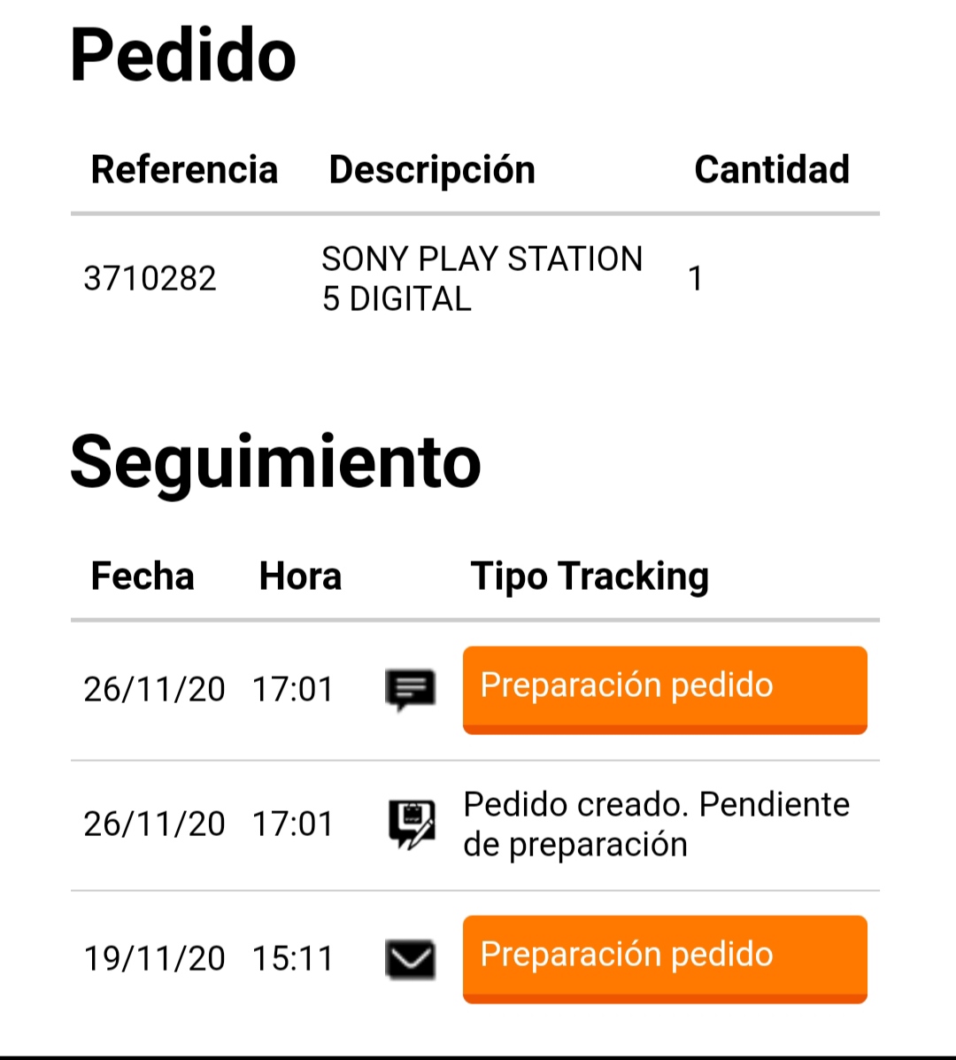 Pues nada, pedido realizado el día 19 a las 13.00h, solamente tenía el mail de pedido realizado, después de varias llamadas donde cada uno me decía una cosa (que si reserva, que si cancelación, que si hay que esperar), me acaba de llegar un mensaje de pedido cancelado por parte de orange.