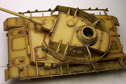 Para los escapes se me ocurre que puedes dar un lavado oscuro simulando grasa y suciedad. Coges color chocolate de humbrol y lo diluyes muchisimo, como hicimos con el oxido, al 90% o mas. Mojas con la mexcla toda la supeficie del escape. Como es una mezcla muy diluida, tiende a acumularse en las rendijas y los boquetitos, lo cual le da realismo. La superficie lisa simplemente cogerá un tono mas oscuro y los agujeritos y las rajas cogeran mas cantidad de liquido, por lo que habrá mas pintura y se quedarán mas oscuros. Te pasas por una tienda de modelismo y compras un botecito de "pigmentos MIG", te lo compras en negro. Con un pincel coges el pigmento y aplicas el polvo en la salida del escape, frotando suavemente. Soplas para quitar el exceso y ya tienes el humo del escape (así está hecho el humo de los escapes y de la boca del cañon del tanque de las fotos de arriba).