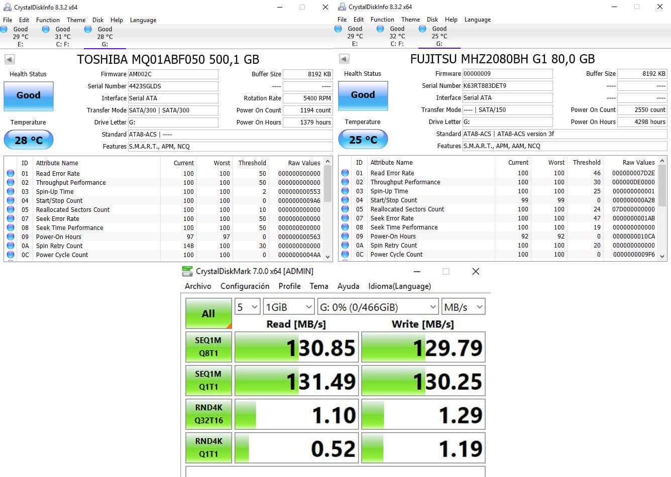 Hola de nuevo. Pase el software que me comentaste y otro que se llama crystalDiskMark a ambos discos. Todo parece estar bien. Te adjunto captura del resultado de ambos programas.EOL.jpg