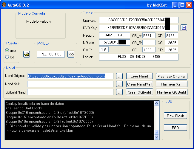 Checa que este bien la nand generada escribiendo tu CPUkey en el 360 Flash Tool para ver si lo desencripta correctamente.jhernanss escribió:Hecho esto intente abrir el fichero con el 360_Flash_Tool pero daba un error y no lo abre "couldn't read file or this Image is unsupported". Parece que genere un fichero corrupto![]()