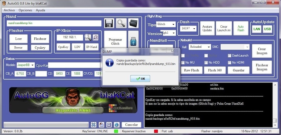 Aún así tengo dudas respecto a la Nand extraida. Cuando le doy a "Extraer" no me detecta la consola y tengo que seleccionarla manualmente (Jasper, 256). El proceso de extracción de la Nand aparentemente funcionó correctamente, ya que se ha llevado algo más de 3 horas para sacarla. Entiendo que está todo correcto, ¿no?