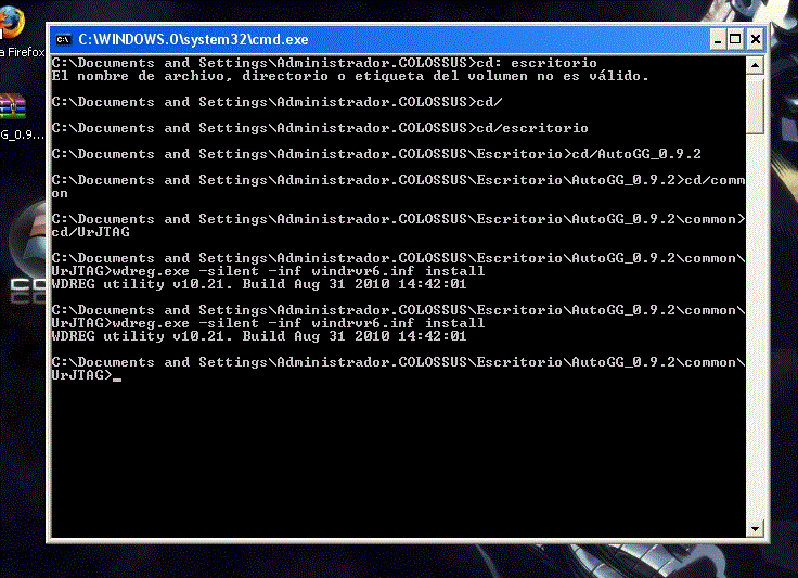 Prueba a abrir un terminal Dos , situarte en la carpeta de autogg\common\urjtag y ejecutar:
