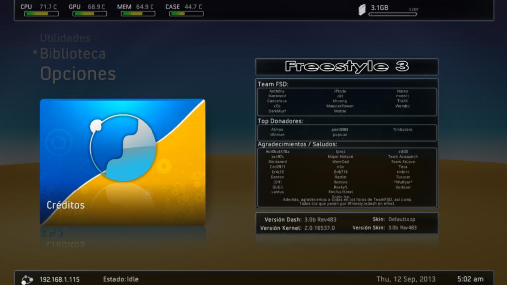 Es importante que sigas todo como te dice el tutorial. Tienes que tener instalado el dashlaunch 3.08 para poder actualizar y el ultimo freestyle que es el F3.0b Rev 775 (14/08/13) instalalo antes para que lo tengas todo actualizado.