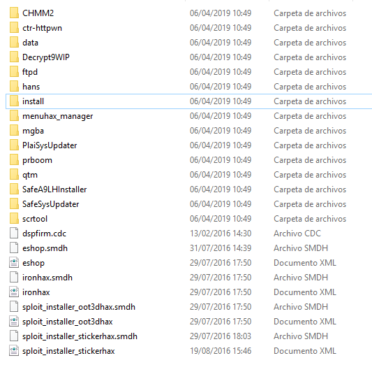 Como se puede ver en la raiz de la SD, algunos archivos son del 2016 mientras que otros son de 2019.