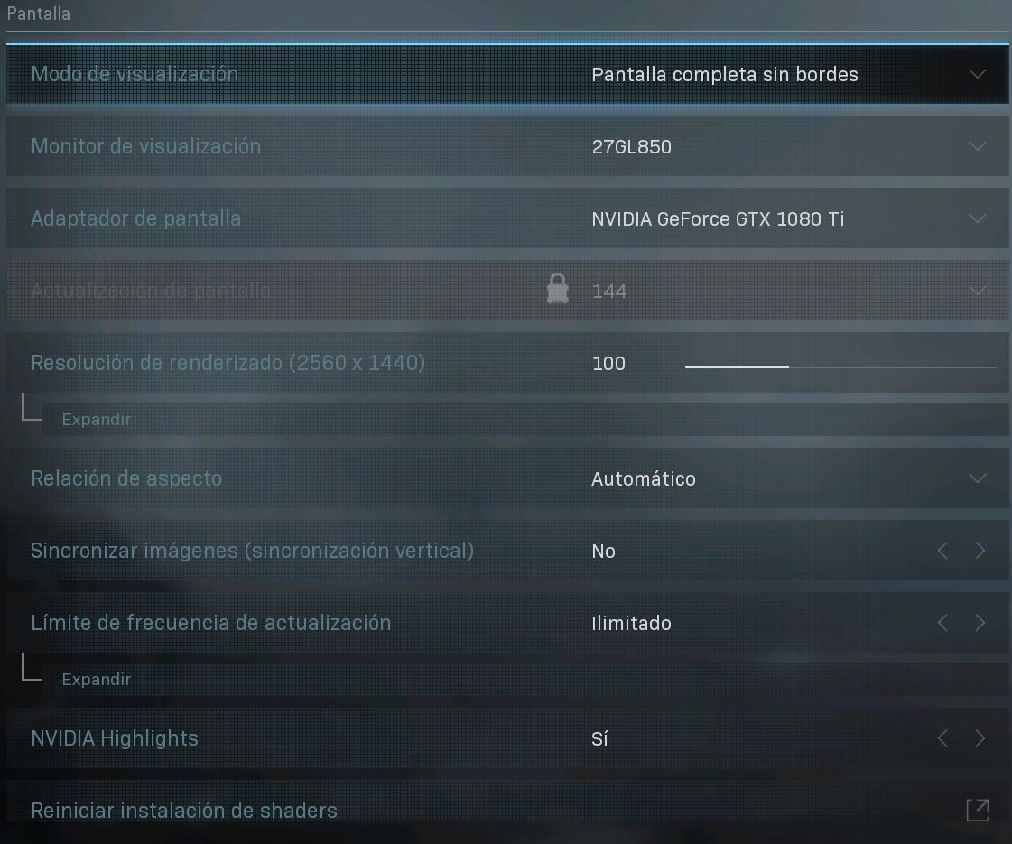 Edito: os dejo por aquí mi configuración gráfica jugando con el monitor LG 27GL850-BOpciones gráficas 1.JPGOpciones gráficas 2.JPGOpciones gráficas 3.JPG