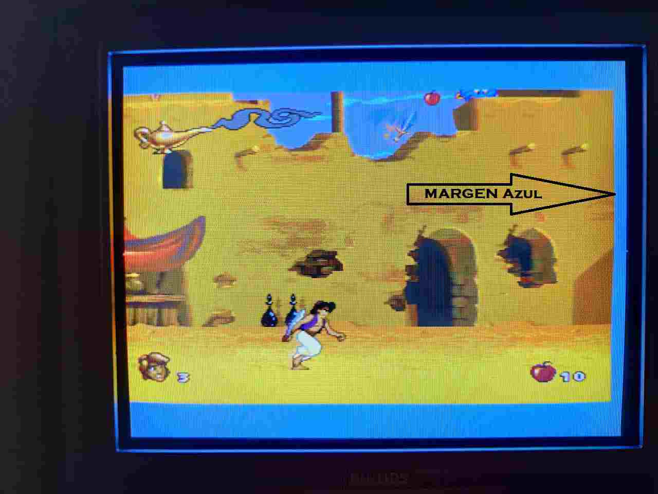también decir que levanté el sexto pin del chip grafico Sony CXA1145P, no soportaba las barras con el cable RGB