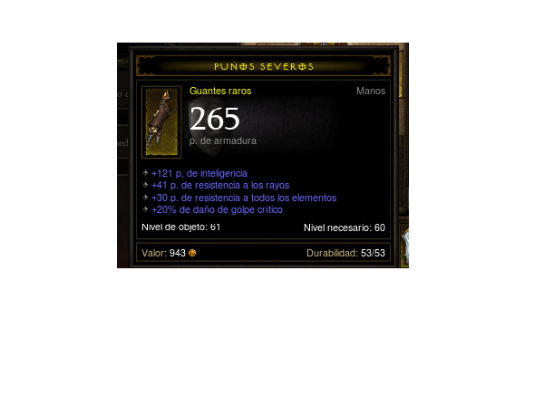Por lo menos tengo el consuelo de de haber subido 10lvl y sacando unos 300k..... Por cierto, he descubierto que me saco mas dinero en la subasta vendiendo objetos de lvl15-30 jugando en normal que vendiendo de lvl62-61 que me salen en el acto 1 de Averno..... Se venden a precio mas bajo, pero se venden muchísimo mas rápido.....