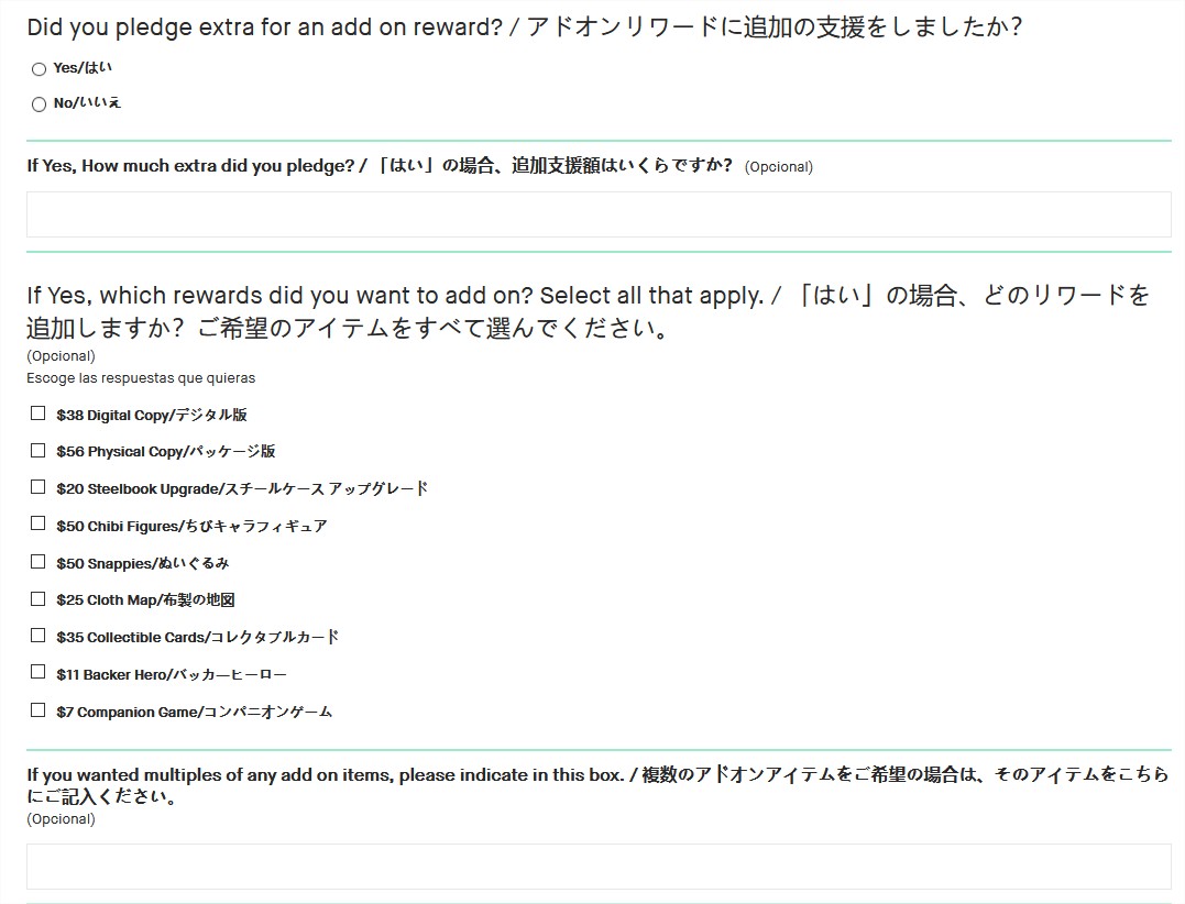 Q: I am a Japanese backer. When I input Japanese into the address, I get an error, and I’m unable to submit my survey.