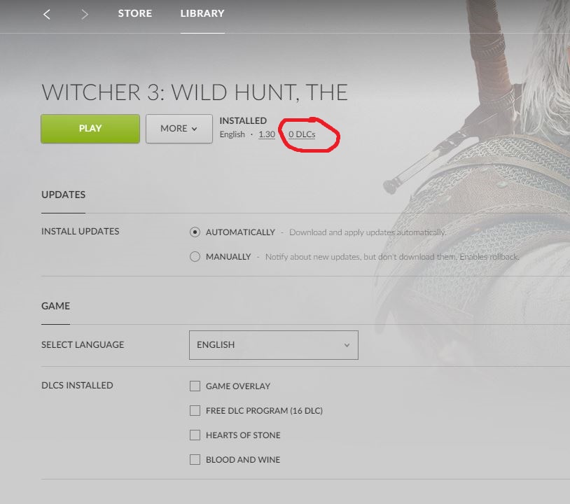 No me sale lo de dlc, supongo que es por tener la goty, me sale english y la version del juego que es la 1.31 y ya.
