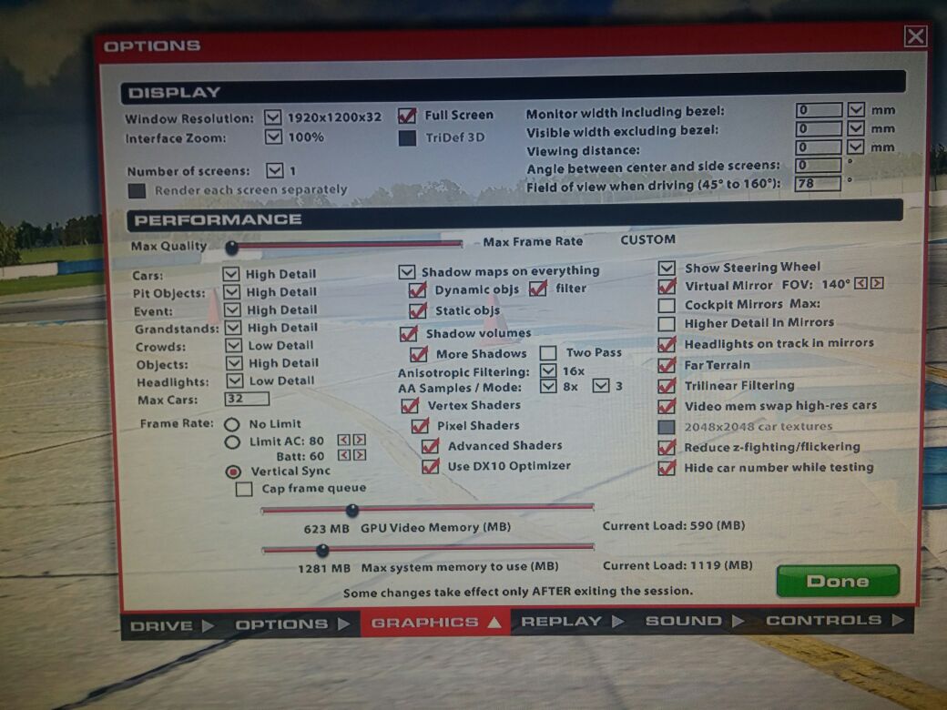 yeyo_3 escribió:Bueno pues al final he visto que tenia una oferta en el correo de 3 meses por 12 dolares y me he echado para alante jejje. Ahora vienen las dudas. Voy a unos 200fps y el juego me da unos microtirones y los fps no me bajan he probado a activar la sincronizacion vertical pero no me capa el juego a 60fps. Alguien sabe porque puede ser?? Y otra dudilla me podeis decir una configuracion para el volante g27??