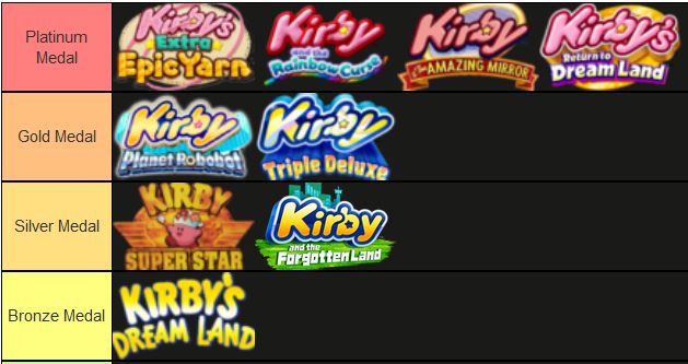 Imagino que no opinareis como yo, pero diria que es asi como dejo los juegos de Kirby que he jugado.