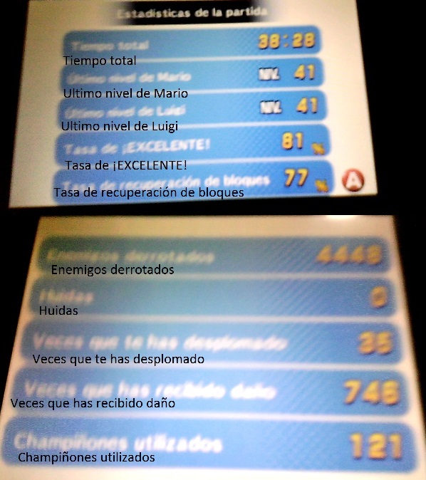 Con Luigi la primera vez que suban de nivel un 20% mas rapido y con Mario un espacio extra para las medallas, la segunda vez para cada uno elegi el contraataque 200% y para la tercera que subi elegi Super suertudo con cada uno que hace que si haces un ataque de suerte sube un tanto porciento.