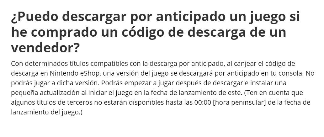 Eso es el texo que pone en la web de soporte de Nintendo, yo solo digo que por ejemplo para algunos releases los juegos no han estado a las 00:00 nuestras, depende completamente de la desarrolladora. Y no recuerdo donde lo leí pero según decían la salida para USA era a las 00:00 ET. Ya digo que si finalmente el lanzamiento es mundial, bien para nosotros, no pretendo joderos la noche ni nada por el estilo [+risas]