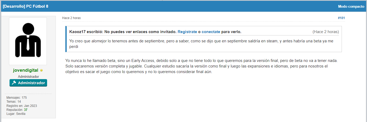 No, mira. No puede ser PCFutbolmaniaco el tío que le dice a Héctor "Héctor, vete ya", ese no es un PCFutbolmaniaco , ese no es un PCFutbolmaniaco , ese es un tío que sobra del foro de PCFutbolmania y que sobra de la comunidad de PC Futbol.