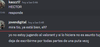 Las Pranks de Héctor escribió:MrRick2 escribió:Kaooz17 escribió:Informacion de los trabajadores tuve, en algun momento, sobre agosto o asi, y respecto a lo de la casera, yo llame esperandome de que fuera el numero de HP el personal, y salio eso, la señora me pidio que le dijiera que iba pasando con el tema y ya, si a mi esa señora me coje y me dice oye no me molestes mas que me da pereza el tema no quiero saber nada de nada, pues yo no hubiera seguido y yo no te hubiera contado nada a ti de que HP no tenia ningun tipo de presupuesto, de echo conozco gente que a buscado el patrimonio del mismo y cosas asi y que pasa por investigar? entonces toda la gente que a buscado cosas de HP o de su pasado laboral o etc tambien son gente mala y que segun tu tienen un mal comportamiento no¿? a mi esa señora me dice que no quiere saber nada no la hablo, a mi esa señora me dice que quiere saber las cosas que pasan y se lo digo no tengo ningun problema, llame salio eso y lo que salio es lo que hubo.