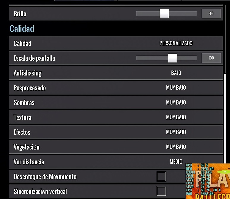 Tengo más o menos tu equipo y estoy pensando en comprar el juego. Pero me acabas de asustar. ¿por qué juegas en bajo?¿tan mal va?