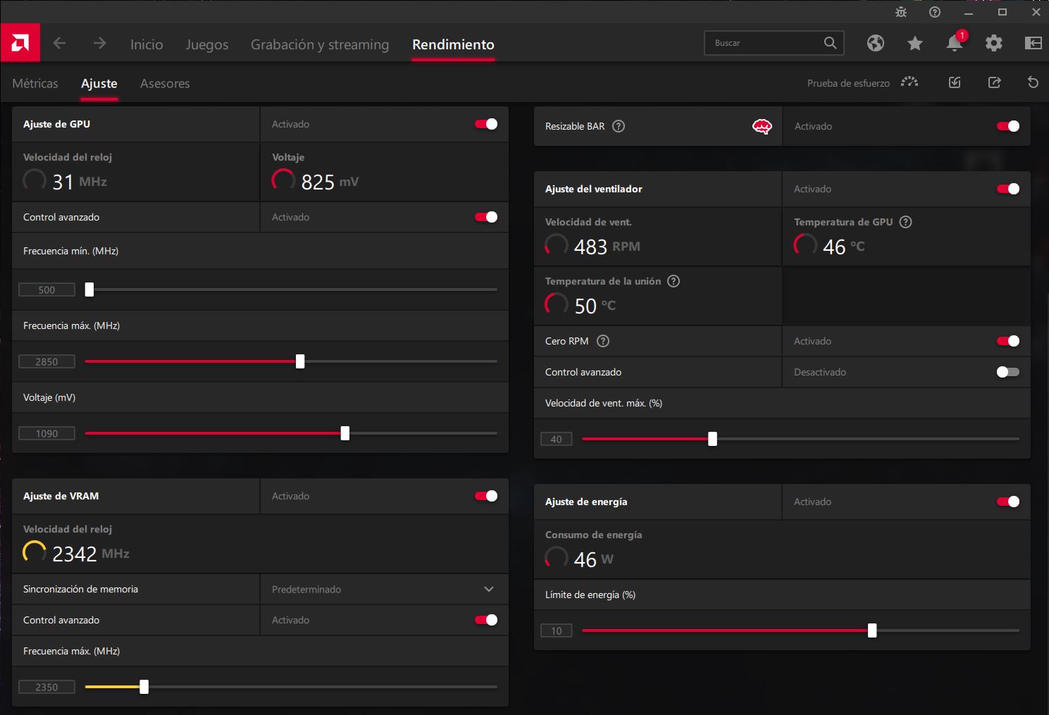 Primero que nada agradecerte el aporte, tengo una 6800XT y poniendo tu configuración en Adrenalin me ha bajado la temperatura de la grafica en unos 15-20 grados... ya con eso soy mas feliz que ayer jajajajaja.