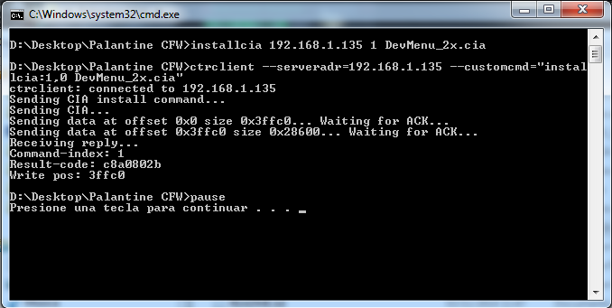 Estoy en la carrera de instalar el CFW, me ha tomado tiempo poder ejecutar correctamente el CFW ya he pasado al punto del cambio de color de la pantalla y que se reinicia la maquina, en ese punto estoy intentando instalar por WIFI el DEVMENU_2X.cia sin embargo no hay ningún tipo de conexion, me dice que hay el siguiente error: