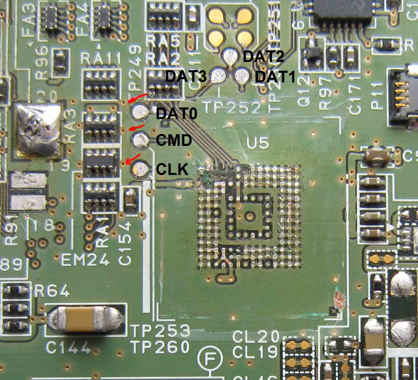 Una pregunta @timehero o cualquiera que lo sepa, estos topos que marco en la foto son los mismos que DAT0 CMD y CLK o no tienen nada que ver. Y en caso de que no lo sean, cuales serian.