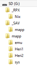 - Para guardar las partidas, se crea otra carpeta en la raíz llamada "_SAV", y dentro de ella otra con el nombre del archivo .rpx del juego en cuestión, en nuestro caso quedaría así: sd:/_SAV/m3dw. Dentro de esta carpeta, hay que crear otras dos, una llamada "c" y otra llamada "u".