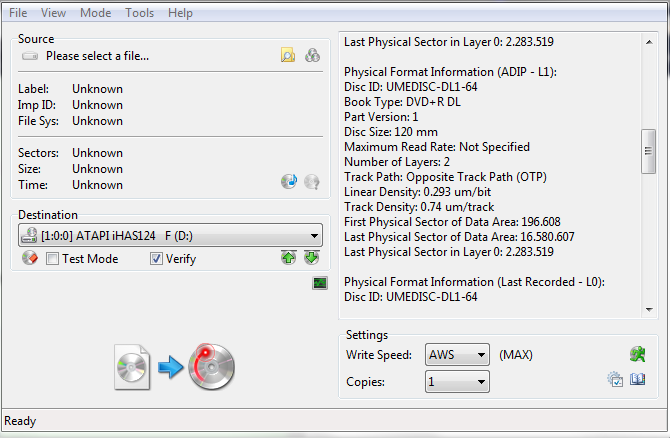 I 21:51:49 Destination Device: [1:0:0] ATAPI iHAS124 F CL9M (D:) (SATA)