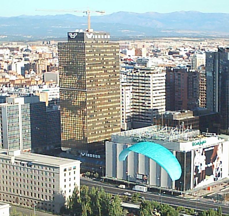 Editado: El CI (Corte Inglés) de Castellana está justo al lado de este edificio, pero no sufrirá algún daño. Como mucho, lo que le puede pasar es que le caigan encima cascotes o algo así. De hecho, nos hemos encontrado a unas de las limpiadoras del edificio (las han largado a toda prisa, y estaban por la calle con traje de faena de limpieza), y nos han dicho que tal y como están los edificios puestos no tendría que pasar nada.