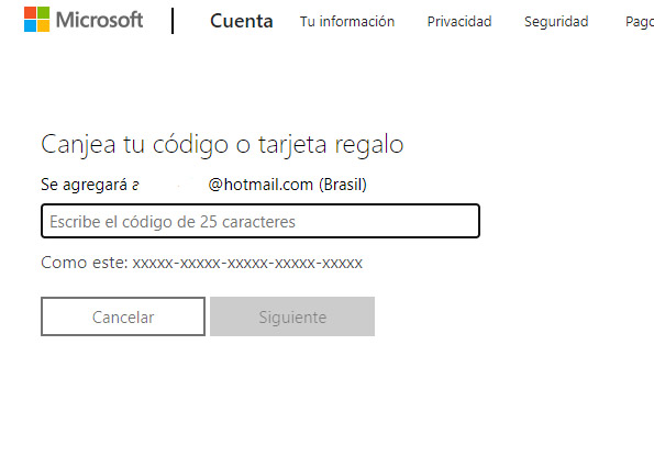 2- Conectado a una VPN en Brasil (hay muchas gratuitas o con periodos de prueba, yo he usado tunelbear) , haces login en tu cuenta de Microsoft y canjeas los 3 códigos, rechazando la autorenovacion en las 3 tarjetas para que no os metan el mes gratuito.