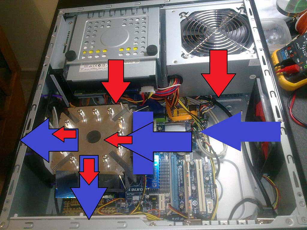 Hay que ver ademas donde esta colocado el gabinete que si esta en un lugar donde poco o nada puede circular el aire fresco es obvio que tendras alguna recirculacion del aire caliente que esta saliendo del gabinete. Una buena limpieza de el disipador y que no exuista obstruccion de los mismos cables en la circulacion del aire interno.
