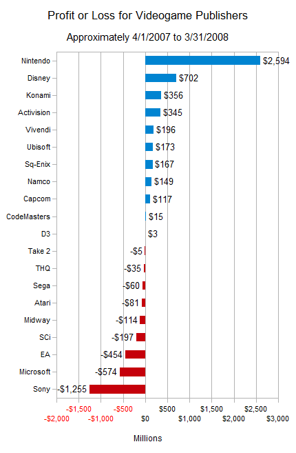 Lo que no entiendo es lo de EA, lo de Microsoft y lo de SONY se puede entender por las pérdidas que puedan ocasionar sus consolas, pero EA, con los ingresos que tiene, no sé donde mete todo el dinero... imagino que será en compras de estudios o algo, porque si no no me lo explico