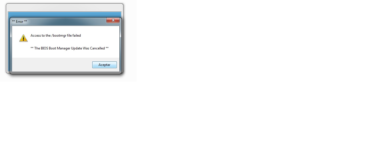 Pero como no puedo instalar grup2win, me tira un error de que algo falla en /bootmgr