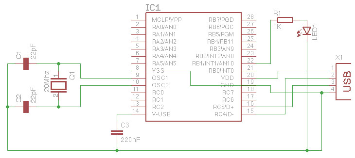 La diferencia con el esquemático de ElSemi está en el pulsador para reset/bootloader (útil solamente para reprogramar la pcb por USB haciendo uso de la aplicación de carga del bootloader).... y el conector ICSP (para programar la PCB por primera vez en caso de usar un pickit2). Eso... y que el cristal es de otra frecuencia, por lo demás todo igual!