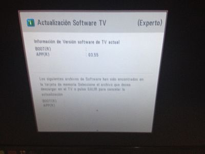 romarmy escribió:Hola,saludos a todos,gracias a Uds he logrado activar el USB en una LG47lh3000 tras un downgrade de la v3.69 a v3.15.Mis dudas son:como podria volver a version actualizada?No encuentro ningun link .Y,lo mas importante:podria pasar a LH5000 o 7000 como vi algunos comentarios?Me aparecio la casilla Bluetooth-la active......