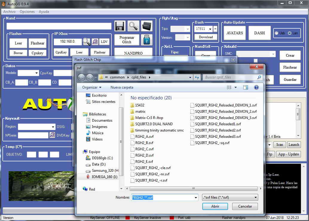 el tipo de instalación.... ahí me refiero no al software autogg, sino ..... mmmmmm cómo explicarte fácil...... yo hago instalación en jasper rgh 1.2 (del hilo de usuario-x , el método de 15432) en la consolas phat, con chip matrix v3 y los timmings de la carpeta /common/cpld files/15432/rgh 1.2/rgh12/try these first