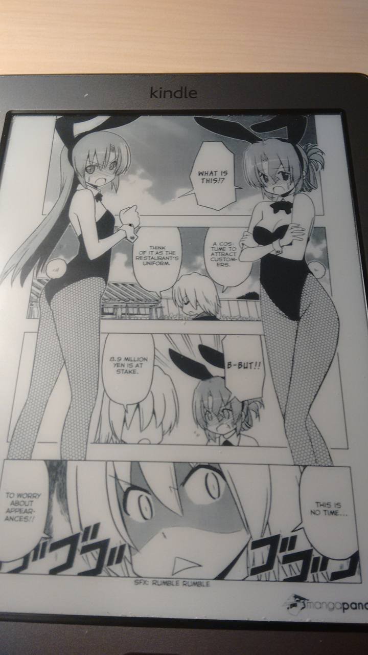 A ver, para mangas en general, recomiendo convertirlo con el Kindle Cómic Converter (tambien sirve para Kobos y demás es) y adapta las paginas al ebook ya sea quitando los márgenes hacer una traducción de colores a escala de grises etc. Y así el kindle necesita escalar menos.