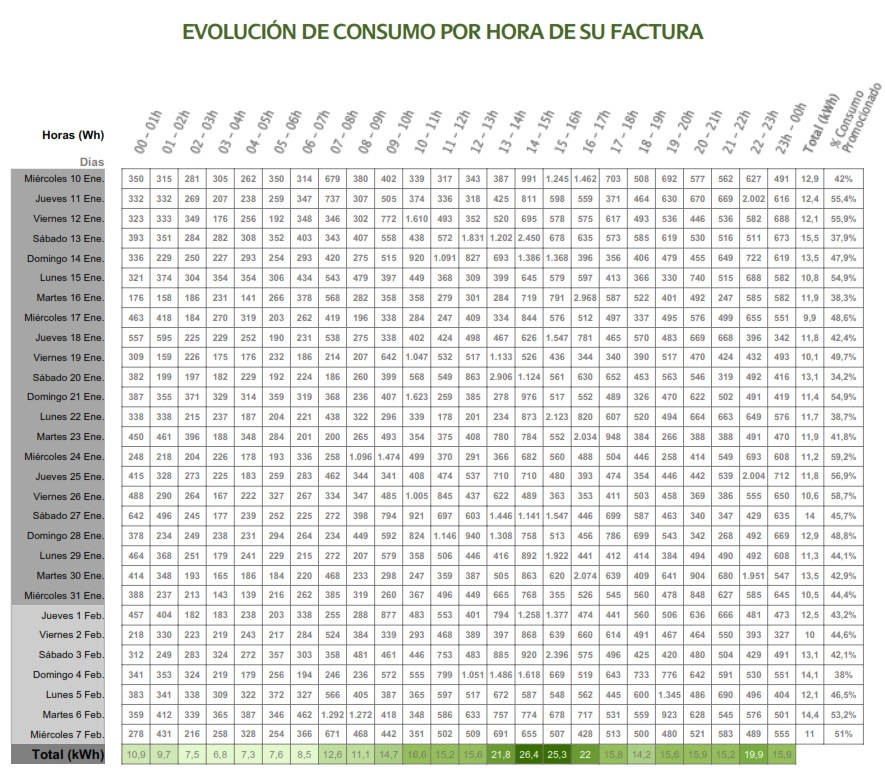 creo que tu "problema" es que tienes todo electrico en casa y consumes sin cortarte... pero bueno, hablo a priori lo que no es una buena costumbre.