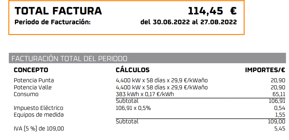 Facturación por energía consumida 128,06 €