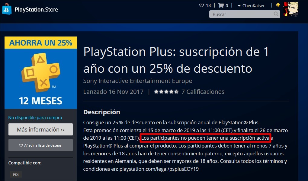 Desde hoy y hasta el 26 de marzo a las 11:00 (CET) Sony Interactive Entertainment España ofrece la suscripción de 365 días a PlayStation Plus con un descuento del 25 %. Gracias a esta promoción, aplicable a los usuarios que no tengan una suscripción activa, el código de 12 meses se puede adquirir por 44,99 euros en lugar de los habituales 59,99 euros.