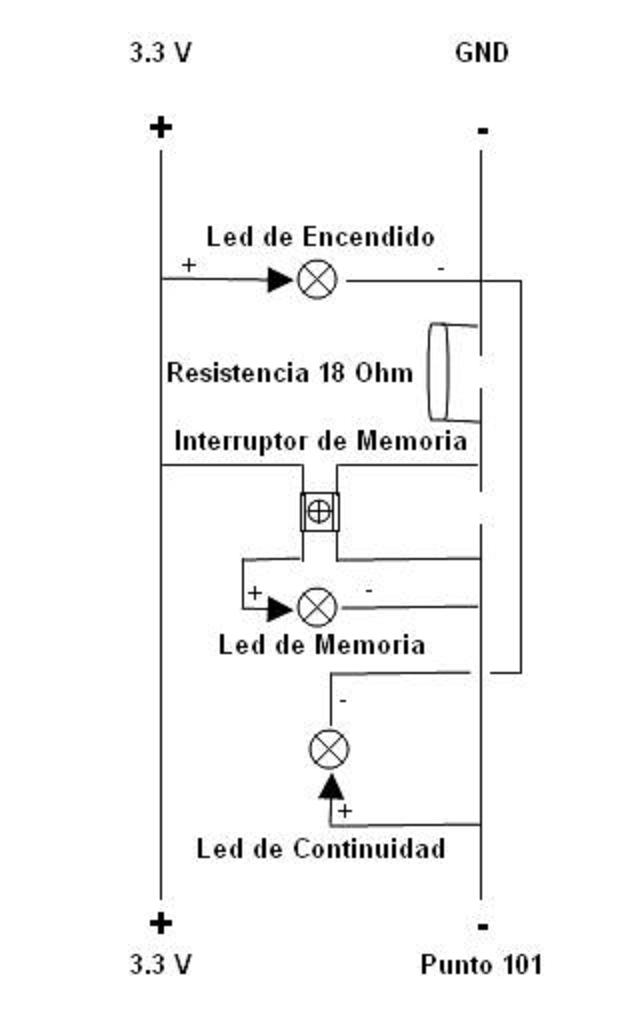 Al hacer resistencia sobre la tierra y el punto 101, este (el punto 101) posee energía de unos 1.7V o algo así, lo que significa que al colocar la aguja, esta recibe este voltaje, en tal sentido si le colocamos el GND al diodo desde este punto, no encenderá, por lo que tomo el GND, de la entrada inicial de energía del extractor, y de este punto tomo el +, de esta forma es que me ha funcionado.