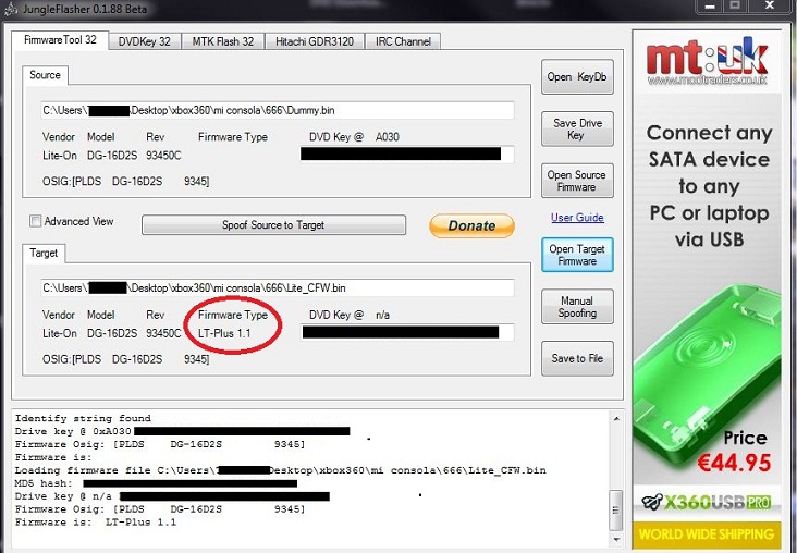 susmu escribió:hola, ayer estube intentando sacar la key de un liteon 74... y cuando sta ya flaseada ya se puede sacar sin problemas de cortar pistas y to esos rollos, weno cuando intento sacarla me da error que que el lector no tiene la banjeja abierta, vamos k no sta en modo b, tiene lt 1.0.