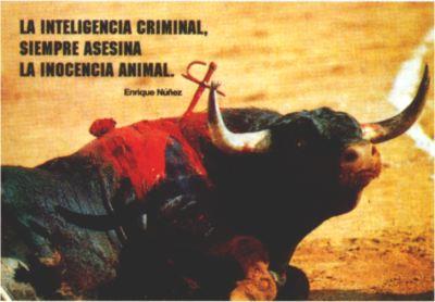 ¿No debería ser para nosotros una vergüenza censurar ciertos programas televisivos en los que se emite un mínimo de violencia y acudir en masa a presenciar uno de los espectáculos más violentos que podamos ver?. Tenemos la hipocresía de llamar salvajes y bárbaros a nuestros antepasados por utilizar métodos de tortura y años mas tarde, después de un notable desarrollo tecnológico y teóricamente también humano, hacemos nosotros lo mismo que años antes con animales indefensos, incapaces de defenderse ante la inminente muerte que les espera. ¿Acaso ellos no sienten dolor?, ¿acaso les gusta lo que sienten cuando son pinchados una y otra vez en la espalda, cuando les clavan unas banderillas cuyo extremo, con forma de arpón, les desagarra los músculos y la piel, mientras desangrándose corren de un lado a otro de la plaza buscando un lugar por donde huir? Lamentablemente, sólo encuentran la puerta a la oscuridad, a lo que para ellos será ciertamente su descanso, alejados de tanto dolor y sufrimiento: la muerte.