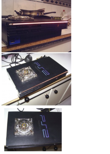 Solo se una cosa, si tomamos un PC (es lo mismo pero con mas espacio) y ponemos un ventilata de salida atras en la parte de arriba (justo debajo de la fuente en su lugar habilitado para ello) y otro en el frontal, lo mas abajo posible (estamo screando una circuito de aire perfecto, ya q se calienta, y tiende a subir, lo mas importante es q puede hacer una linea recta y estan en el mismo plano vertical), conseguiremos una temperatura como 3 o 4º inferior q si ponemos un ventilador de mandando aire directamente a la placa base (en el lateral, y de forma perpendicular a la corriente deseable de aire). Y esto lo digo por que lo he comprobado con el mismo equipo... y la misma caja. Por eso dudo de la efectividad de esa fuente, ademas, son 50w, y la PS2 no se calienta un pijo (mi GeForce si q se calienta, y muchisimo mas q la PS2 y lleva 2 años funcionando a toda leche overclockeada un 30%). Lo unico q yo digo, es q la unica forma real de enfriar la PS2, es enfriando los disipadores de los chips directamente, y no mandando el aire a plomo hacia la PCB de la PS2, q por mucho q os pongais, el aire q pasa a la parte de abajo, es una cantidad infima...