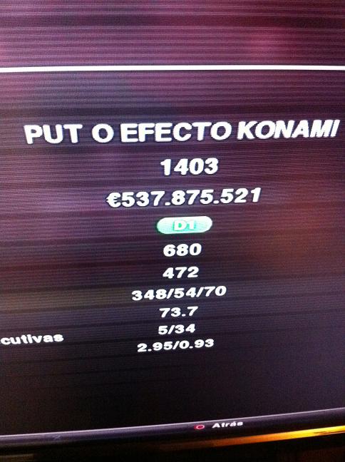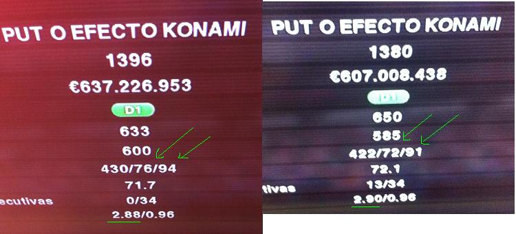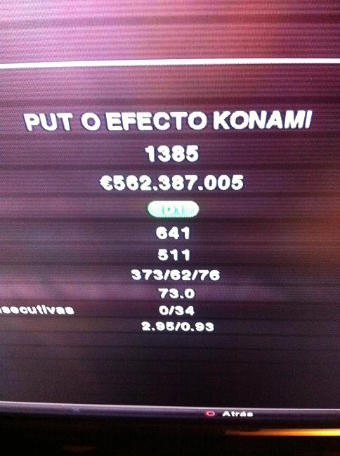 Hace un par de semanas me decidí a hacer un estudio sobre el llamado “Efecto Konami” ya que estaba encabezonado a entender por qué era capaz de hacer una racha de 34 victorias seguidas en la LMO manteniendo unos promedios de 3.20 goles marcados por 0.74 recibidos y de repente llegar un día cualquiera y ser incapaz de ganar en un 1vs1 a un Lothar o parar con defensas de 15kilos a un Macalao, pero no en un partido aislado sino en varios en un periodo corto de tiempo. Tras varias semanas siguiendo una progresión en mis partidos parecida en cuanto a que un día me era muy fácil ganarlo todo, otro se iba complicando algo más y llegaba un día en el que conseguir un gol era una odisea y defender a cualquier delantero rival era imposible, mis defensas llegaban a convertirse en conos que regateaban a su antojo, pero no ya un Cristiano Ronaldo, un Messi o un Pato, sino hasta el más patoso y tosco de los jugadores que podáis encontrar por el juego. Me dije, esto tiene que seguir alguna formula matemática, alguna progresión aritmética, alguna explicación empírica, porque no es normal que llegue a un Domingo con 714 ptos y de repente un Martes lo acabe con 608, y así semana tras semana.. como un bucle ( entiéndase que la puntuación no es exacta pero si ronda esos guarismos).