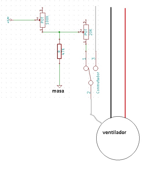 el divisor de tension lo que hace es disminuir la tension de salida, la resistencia que colocamos a masa provoca una caida de tension que reduce la tension de salida, el calculo aproximado era para obtener una salida minima de 0,8v mas o menos (se podria poner una resistencia fija en lugar del potenciometro de 100k, pero habria que calcularla dependiendo de la velocidad minima deseada,por eso tengo puesto el potenciometro, asi puedo cambiar la velocida minima)