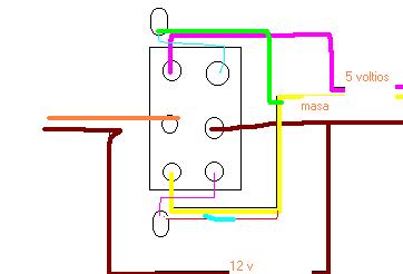 Aki os pongo la leyenda, los leds son los redondeles ke estan encima debajo del rektangulo, el rektangulo es el interruptor de 3 posiciones. La pata larga del led es la ke no lleva un trazo grueso de por medio, la pata korta, la ke lleva el regruesado, ese regruesado es la resistencia de 1 k. Ahora decidme pk no van los dichosos leds, si podeis hacer otro eskema y mostrarme donde esta el fallo pos muchas gracias