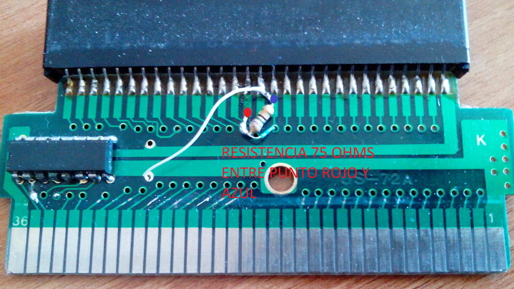 Lo he dejado lo mas claro posible en el poco tiempo que he tenido, lo mas importante es ver que no quedan pines del lado de 60 contactos al aire ( QUE ESTÉN TODOS CONECTADOS), y si hay puente entre dos de ellos (continuos) comprobar con la foto, pues seguramente haya que cambiarlo por la resistencia de 75 ohms o directamente cortar el puente entre ellos.