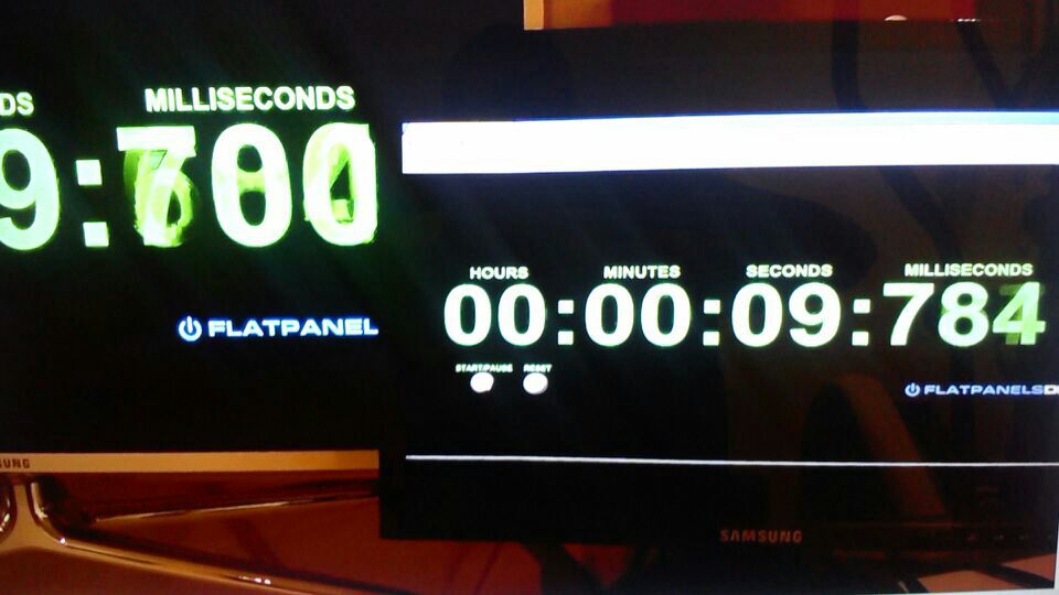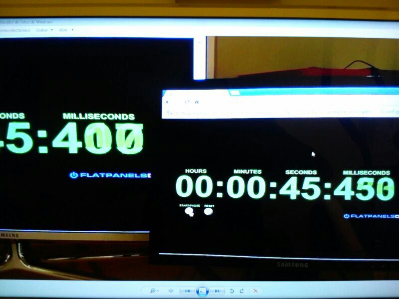 Total que me he traido un monitor (923 nw de samsung) y e puesto un temporizador a ver que tal Al poner las dos pantallas a cogido la resolucion del monitor (1440x900) y la tele solo dejaba configurar la imagen en ocio y estandar, con todo desactivado (contraste dinamico etc.) y me da esta diferencia: