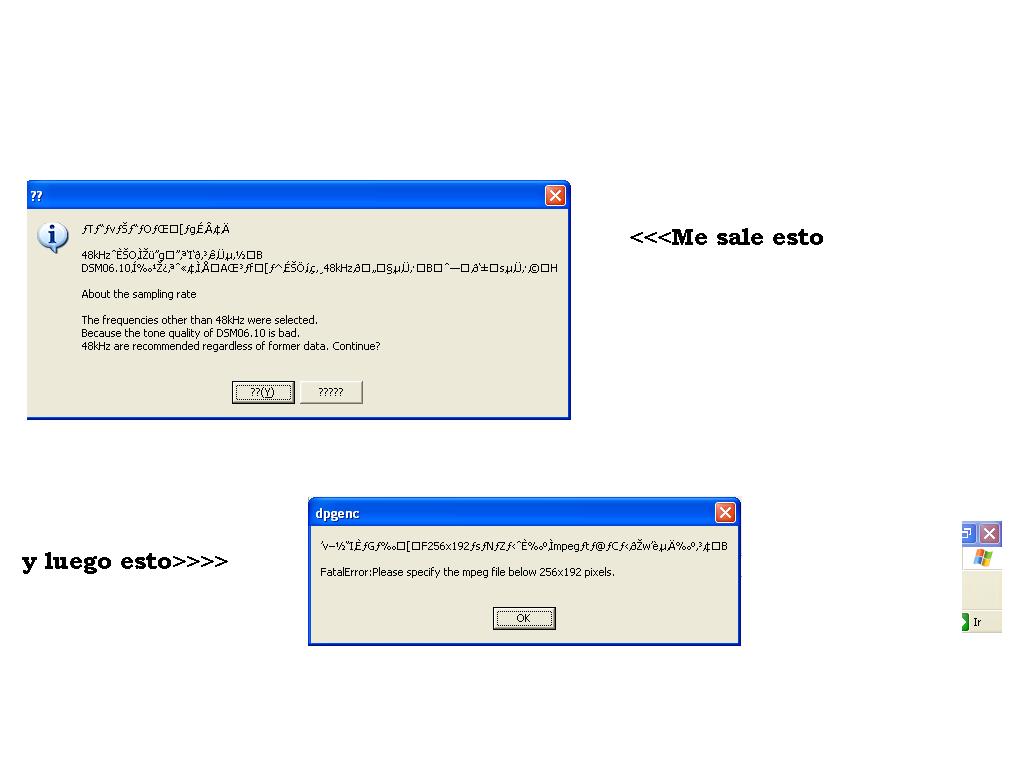 Una vez comprimido, que ha tardado cosa de hora y media (el capitulo dura 42 minutos), lo he pasado por el dgpenc, dejando intacta la cadena de video, poniendo el audio a 32000 como en mi mpg y a 150% de volumen, y me ha quedado un archivo de 63 megas.